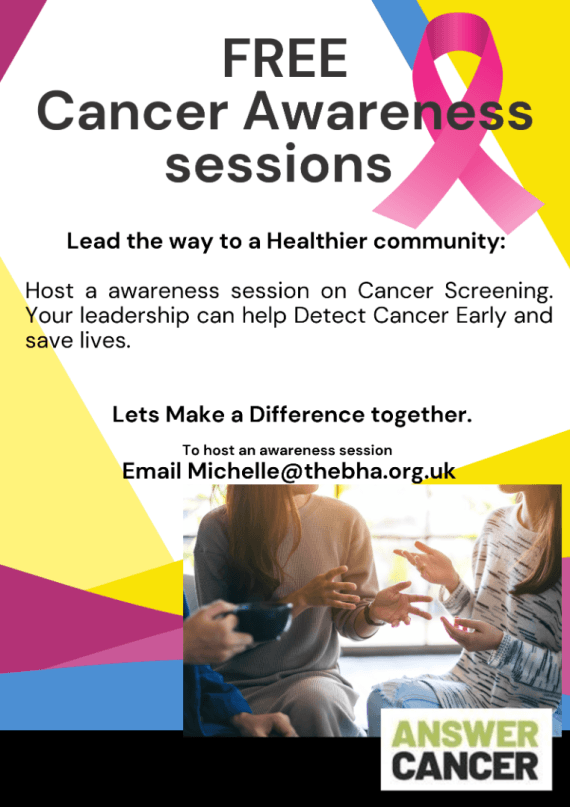 Free training sessions from Answer Cancer, the Greater Manchester Cancer Screening Engagement Programme! Different dates and times are available to suit you. We are now offering training through a mixture of online and face-to-face sessions, so please make note when signing up!